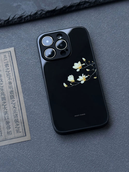 Night Studio White Magnolia Black Phone Case