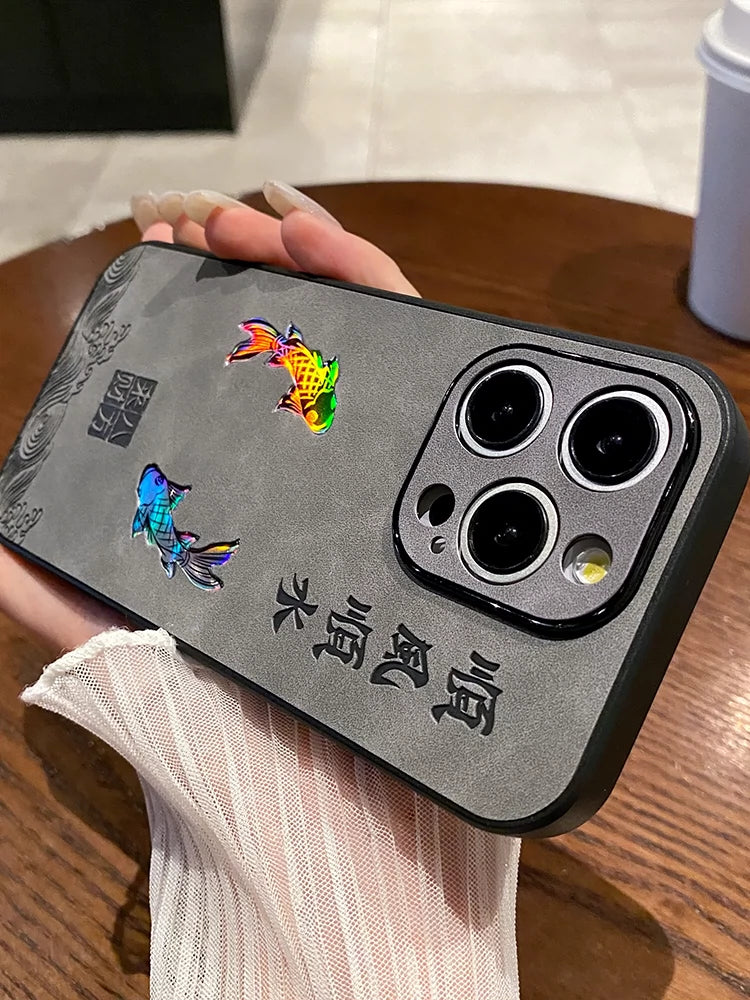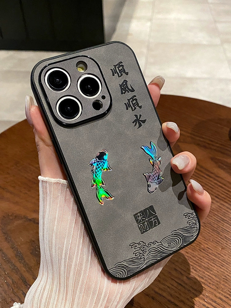 Transform your iPhone into a symbol of prosperity and elegance with the Laser Lucky Fish Pattern Phone Case. This beautiful case not only provides solid protection but also features a stunning laser-etched koi design, representing good fortune and smooth sailing.