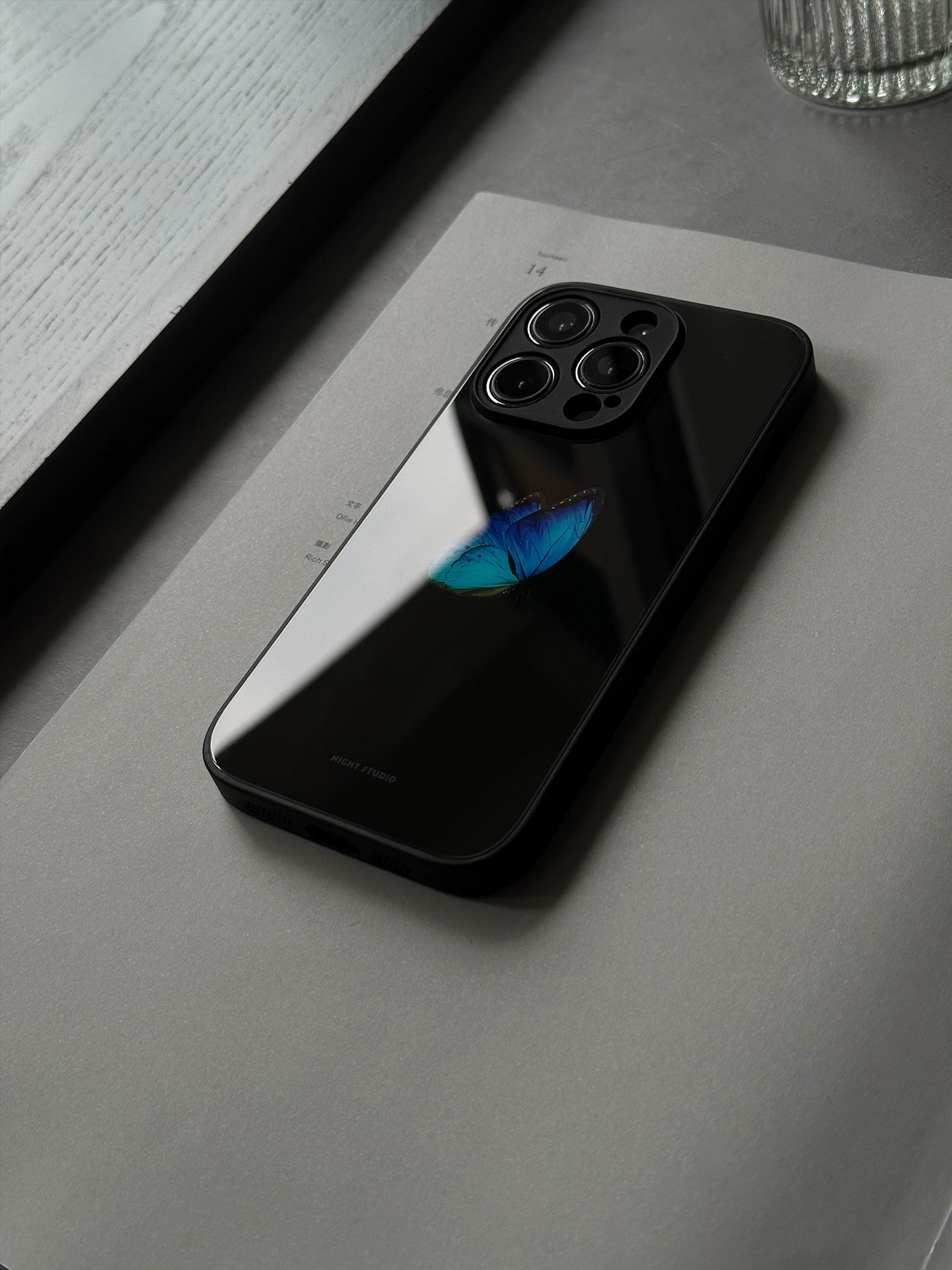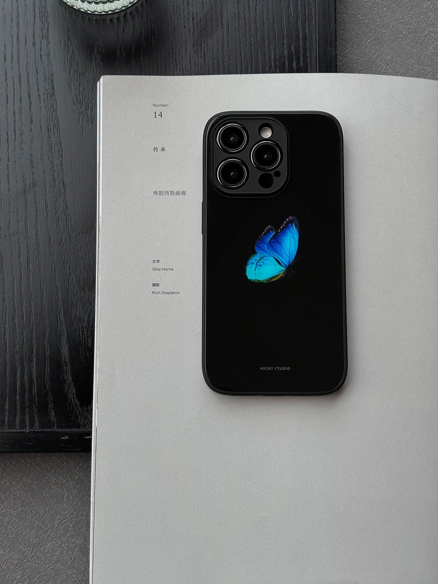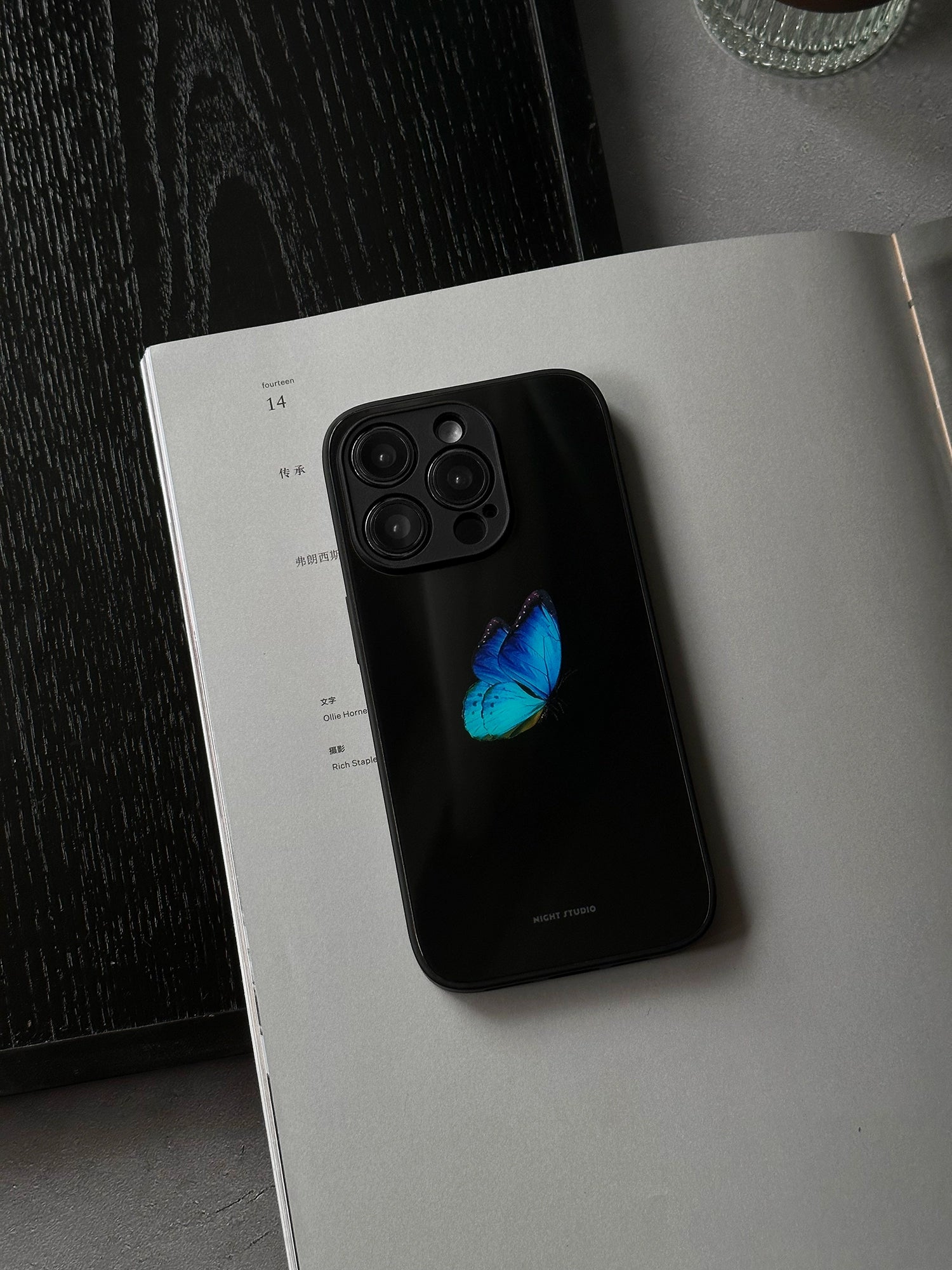 Night Studio Blue Butterfly Black Phone Case